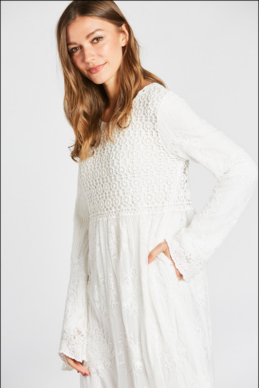 Black Floral Hollowed Crochet Sleeve Boho T Shirt